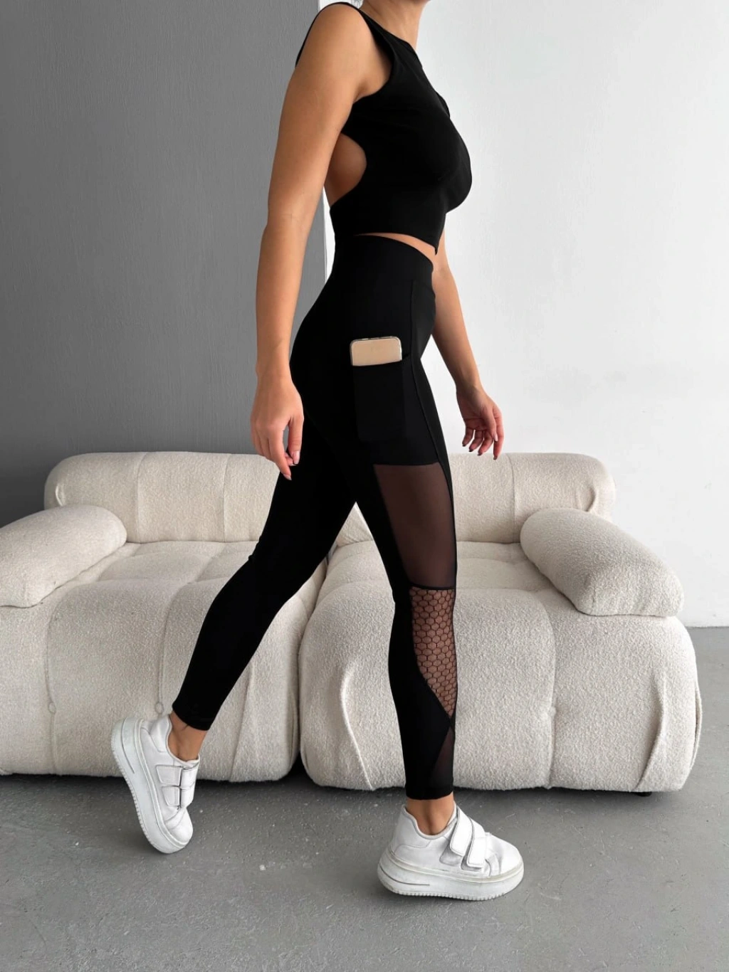 File Tül Cepli Tayt