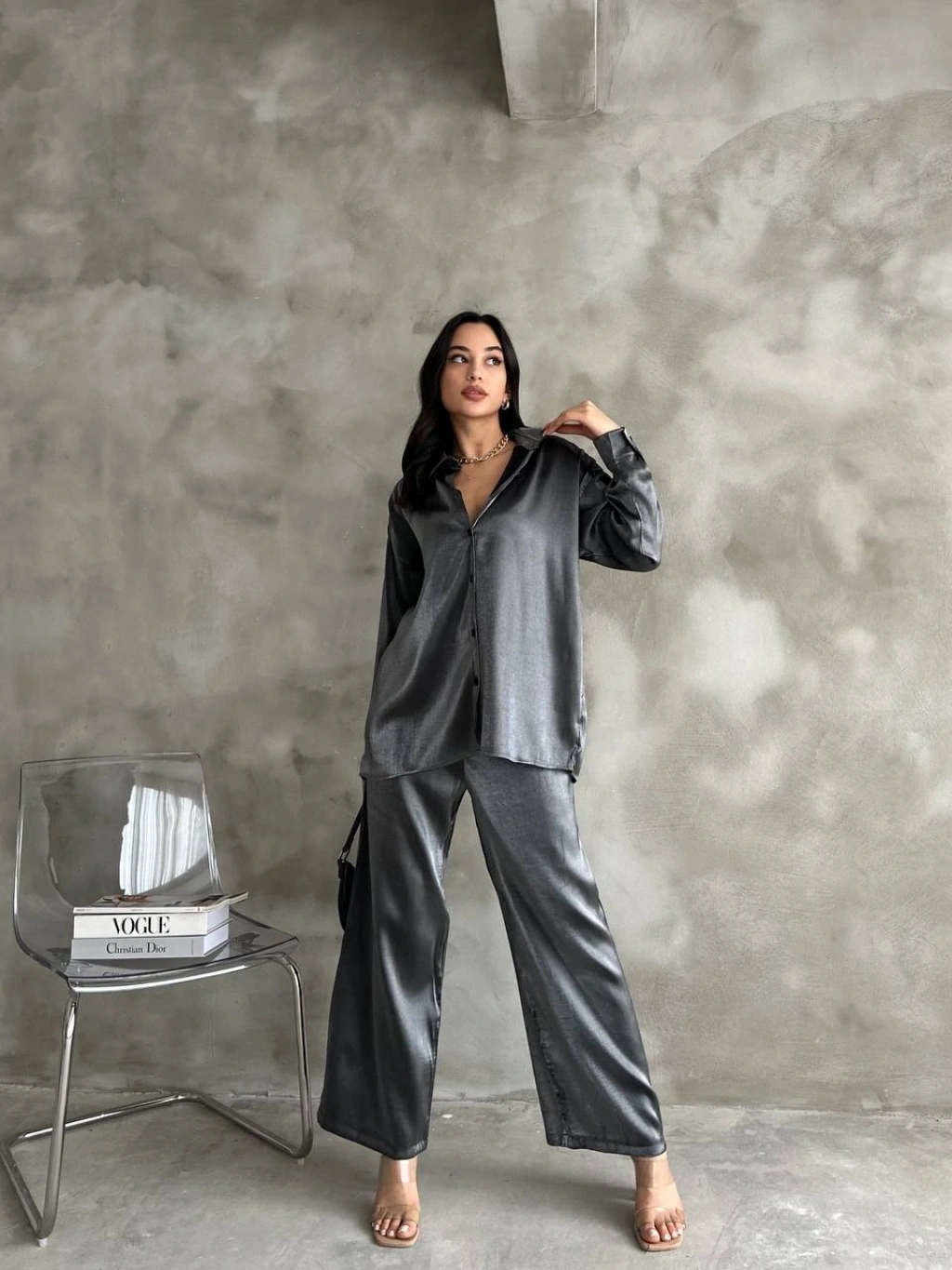 Leopar Desenli Gömlekli Takım L Tek Renk