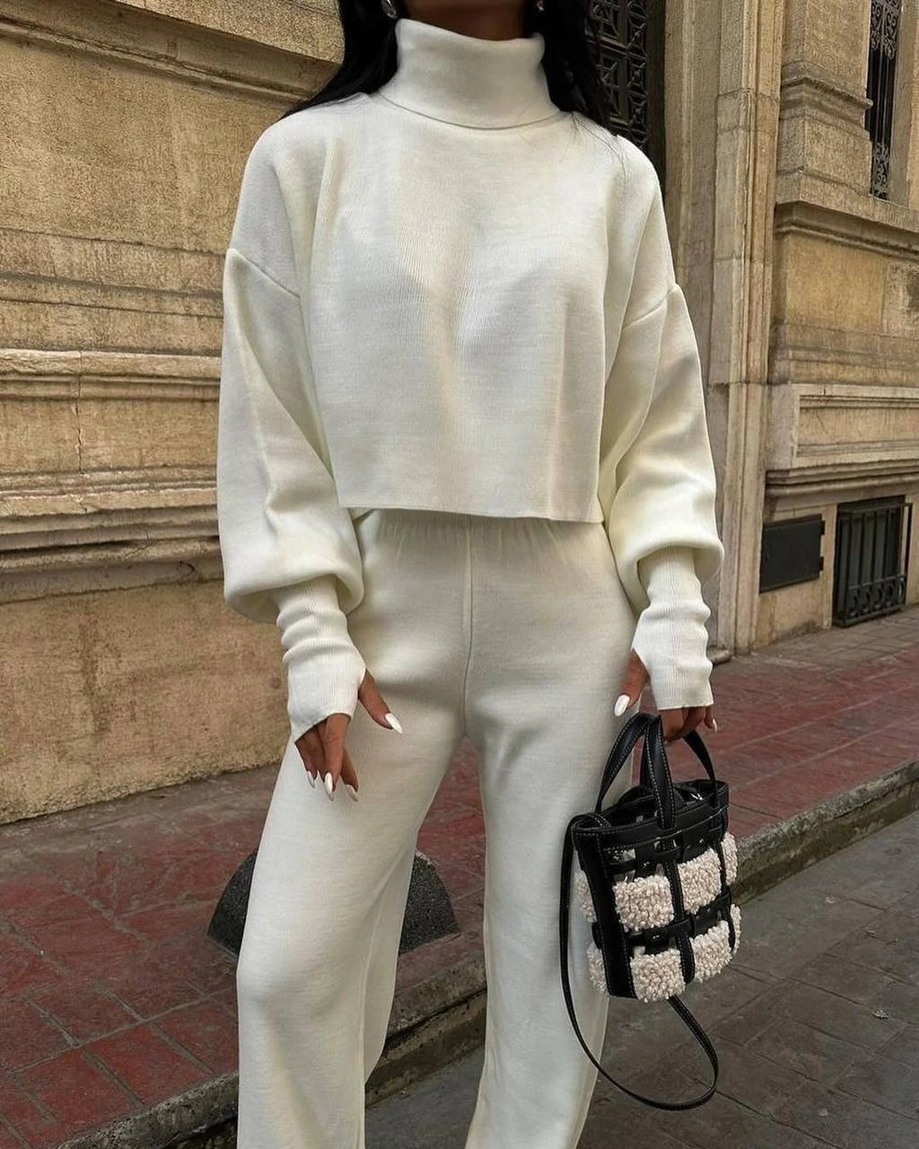 3lü Triko Takım Hırka Crop Yüksel Bel Pantolon
